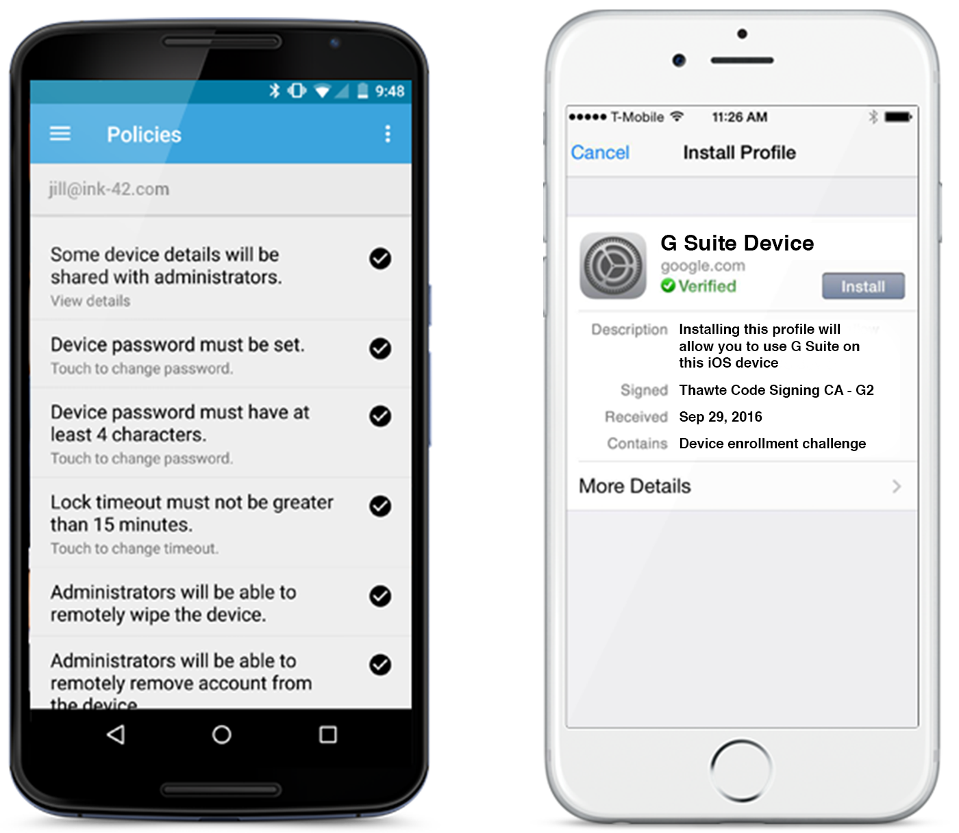 erottelee yrityssovellukset henkilökohtaisista sovelluksista, joten työntekijät voivat käyttää haluamaansa Android-laitetta sekä töissä että vapaa-ajalla. Lisäsuojausasetusten avulla yrityksen omistamien laitteiden määritys on helppoa.